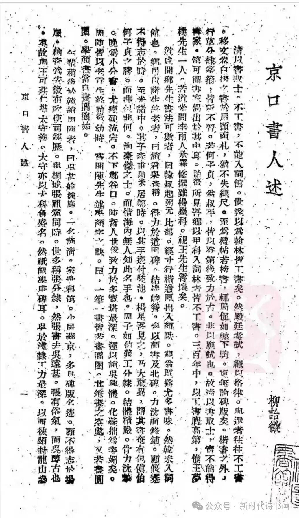 近日,应邀撰写关于柳诒徴书法的研究文章,因此了解到先生的生平、家学、学术和书法等方面的成就和造诣,特别是深入地研究其唯一一篇《京口书人述》书法评论文章,虽然篇幅不长仅仅只有3000余字,但透露出的史料和观点非常珍贵、很有价值,其中有些观点,对当下的书坛乃至整个文化、学术界具有重要启迪意义。