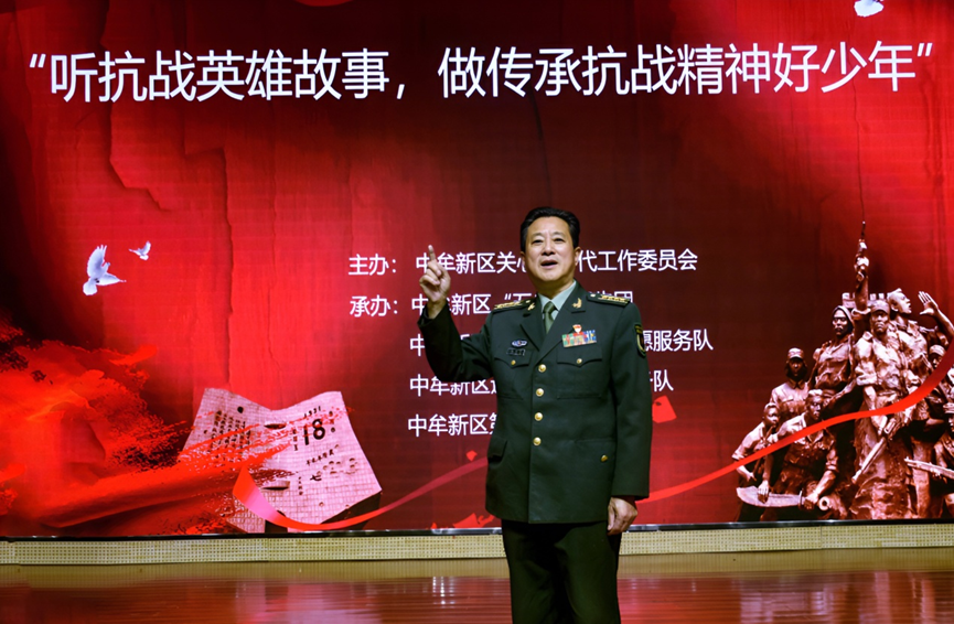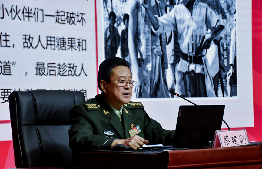 11月13日,中牟新区第七初级中学的报告厅内热烈庄重,由中牟新区关工委主办,中牟新区“五老”报告团、传承红色基因志愿服务队、退役军人志愿服务队和第七初级中学承办的学习抗战精神专题报告会在这里举行。蔡建勋以《听抗战英雄故事,做传承抗战精神好少年》为题,为“五老”报告团和学校初中生带来了一场生动的爱国主义思政课。