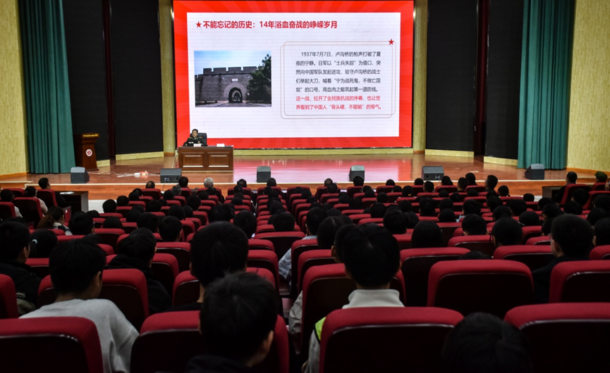 “同学们,80多年前,无数少年和你们年纪相仿,却毅然扛起钢枪走向战场,用稚嫩的肩膀撑起了民族的希望。”蔡建勋以亲切的开场白拉近距离,随后结合自身军旅研究经历,讲述了一系列发生在中原大地及周边的抗战故事。