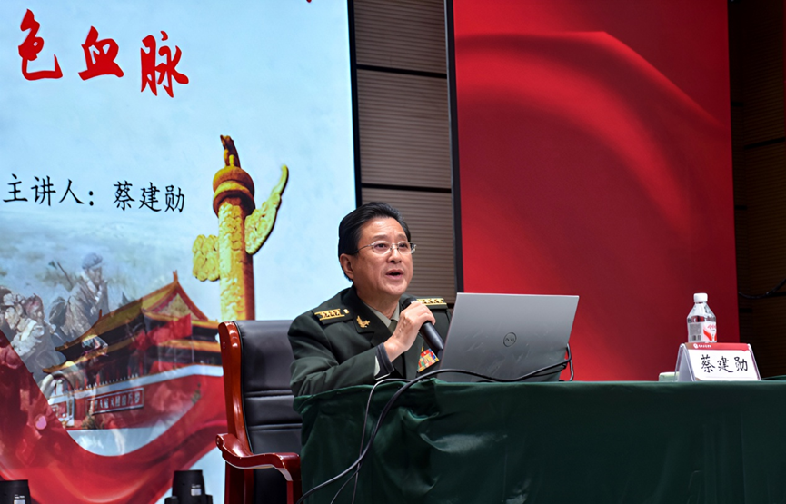 11月中旬的中原大地,寒意渐浓,但多所校园里的红色学习热潮却持续升温。湖南红色文化研究院副院长、国防科技大学原工程兵学院大校、长沙市老兵宣讲团成员蔡建勋应郑州老战士之家邀请于11月13日至18日走进河南,先后在中牟新区第七初级中学、郑州工商学院财税学院等地开展多场专题宣讲,并同步在校园内举办《汲取奋进力量 续写时代华章》红色摄影展。系列活动以“宣讲+影视插播+展览”的创新形式,让抗战精神与长征精神直抵师生心灵,在中原校园掀起传承红色基因、汲取奋进力量的热潮。