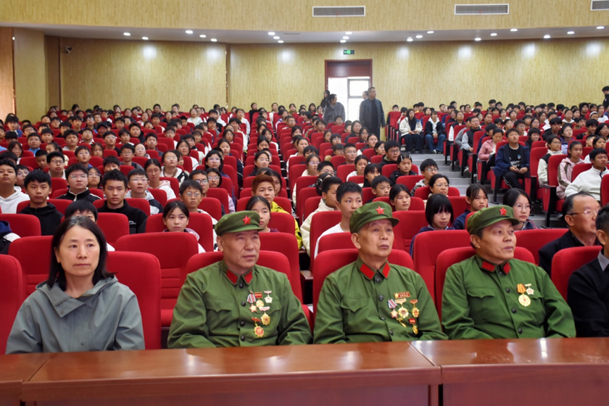 他在讲述平型关大捷、百团大战抗敌的壮烈事迹,以及狼牙山五壮士、杨靖宇等英雄为坚守气节宁死不屈壮举的同时,特别提到小雨来等抗日小英雄:“当时他们的年龄和我们在座的同学差不多大,他们虽然没有先进的武器,却用自己的勇敢和智慧,为抗战出了一份力。这告诉我们:英雄不分年龄,只要有一颗爱国的心,就能做有意义的事。”就“新时代少年如何传承抗战精神”,蔡建勋给大家提出了“用读书铭记历史,做清醒的少年;用读书锤炼本领,做有能力的少年;用读书涵养品格,做有担当的少年”三条要求,叮嘱同学们做好这些,就是对历史最好的纪念,对英雄最好的告慰。现场掌声此起彼伏,红色种子在青少年心中悄然扎根。